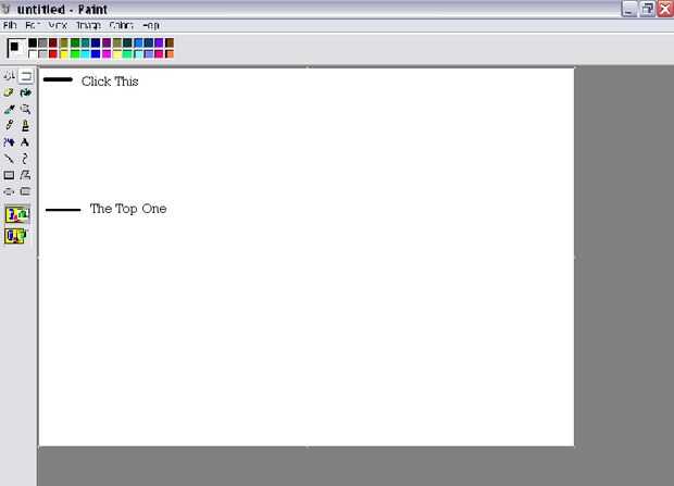 Si tus fotos no son. Los archivos GIF, tendremos que convertirlos. Por esta razón no quiere tener demasiadas fotos. (LO TOMA PARA SIEMPRE.) Abrir Microsoft Paint. (Si no lo tiene, creo que hay algunas descargas en Download.com) Pegue uno de los cuadros en copiando la imagen, (click derecho, copiar) y luego en MS Paint, haga clic en el icono como se muestra en el cuadro. Haga clic en la parte superior, no el inferior. (Usted sabrá lo que quiero decir). Ahora pega la imagen. (Click derecho, pegar). Al guardar, debajo del área que título, habrá un bar de caída. Haga clic en GIF y ahora su cuadro en. Formato GIF, por lo que será compatible con el software que ha descargado anteriormente. Hacer esto para todos sus cuadros.