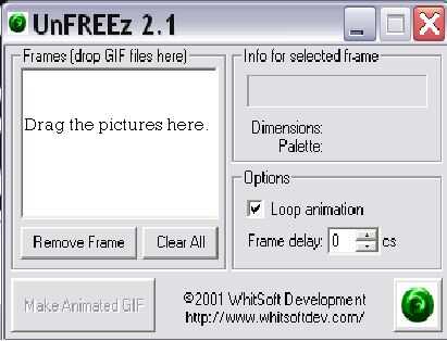 Abrir el software que ha descargado anteriormente. Arrastra cada imagen en el área donde dice "Frames. De la gota. Archivos GIF aquí"usted puede necesitar poner las mismas imágenes en múltiples ocasiones consecutivamente, así durará más tiempo en la pantalla, (cuatro veces es un buen 2 secs) porque no funciona la opción de retraso de marco. Ahora, haga clic en "hacer animación. GIF"en la esquina inferior izquierda.