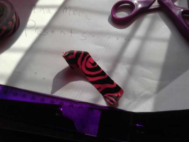 Cosas que necesitará:-Cinta pato-Pinza de pelo, usé el metal estilo piel de cocodrilo.Nota: necesitarás tijeras, no te importa estropear. el adhesivo se pega a la parte interior de las hojas.Paso 1: Paso 1 -Cortar un trozo de cinta del pato sobre el