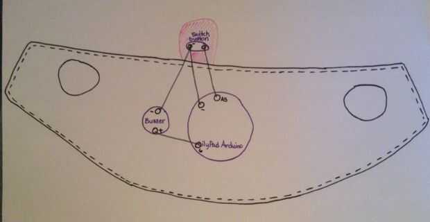 Básicamente, pin negativo de la Junta se une al zumbador y pines negativos de interruptor. El interruptor de botón de otro perno se une al A5 en el tablero principal y el positivo en el zumbador se une a 6 en el tablero principal.