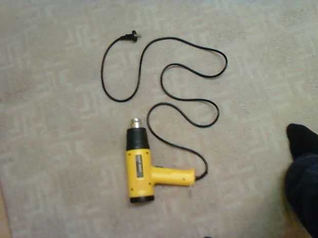 1.-botella de PET 2.-pistola de calor (es una herramienta peligrosa. Producir aire caliente hasta 600 grados. C) 3.-tijeras 4. - opcional, alguna hoja de la espuma suave para mejor conexión si la superficie del tubo es rugosa (como en mi caso)