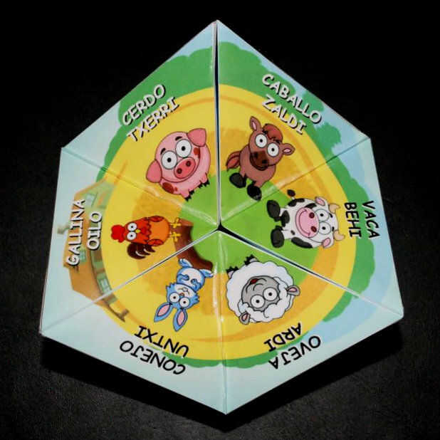 Donde vivimos hay dos idiomas oficiales: Español y Euskera (Vasco). Se escriben los nombres de los animales en estos dos idiomas porque los niños aprenden tanto de ellos en la escuela (también aprendemos inglés o / y francés).
