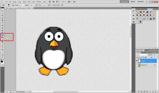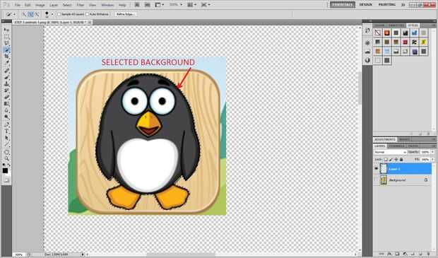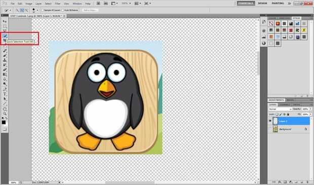 -Seleccionar el fondo de esta capa (Herramienta de selección rápida) y borrar (Borrador).