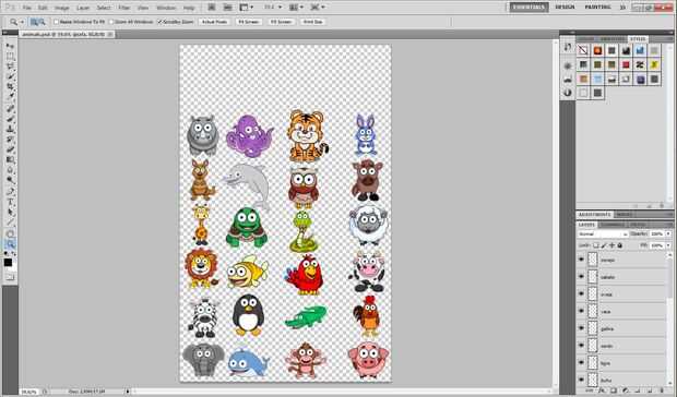 -Luego copiar todas las capas en un único documento y guárdelo como "animals.psd".