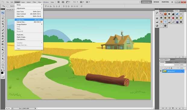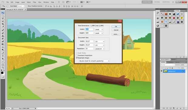-Seleccionar: imagen > tamaño de imagen de los menús. Desmarque 'Restringir Proporties' y la "altura" en el mismo valor que el "ancho".