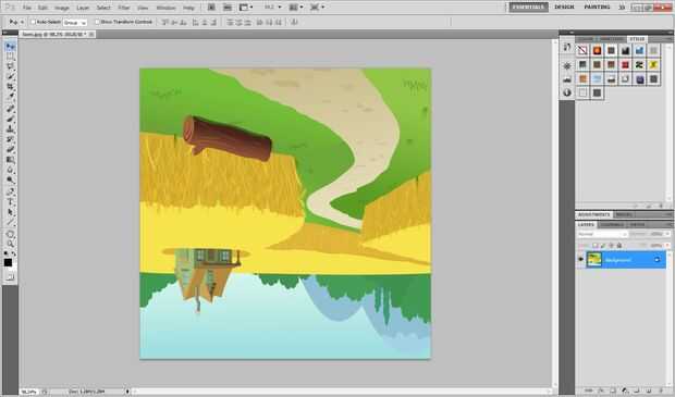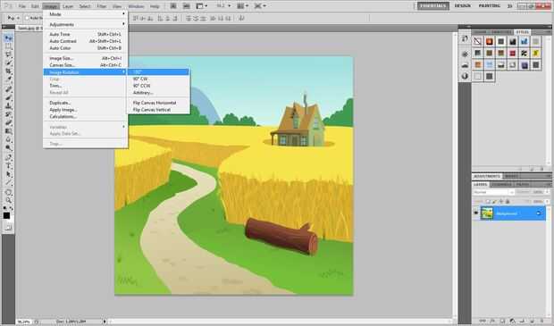 -A continuación, girar la imagen 180 grados. (Imagen > rotar lienzo > 180)