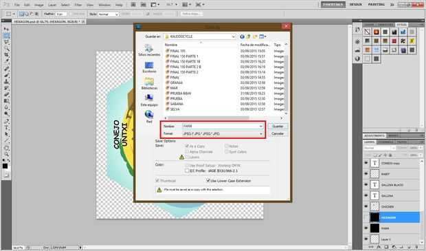 -Haga clic en archivo > Guardar como > JPEG y asígnele el nombre utilizando el nombre del hábitat (la granja).