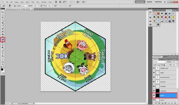 -Para la composición final tienes que abrir el archivo de hexágono.