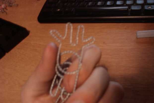 - A continuación se doblan las patas traseras, punto el alambre hacia abajo y use alicates de punta doblar las piernas como en la tercera foto, el procedimiento debe ser auto explicativo