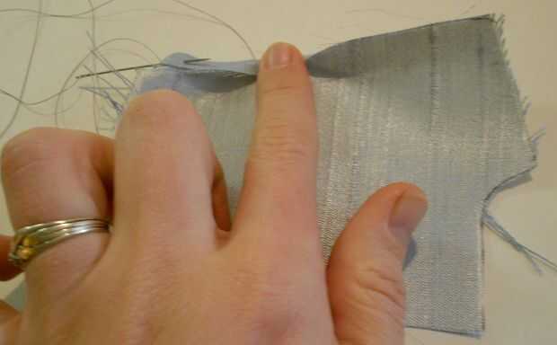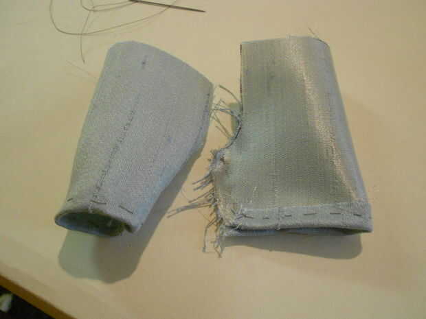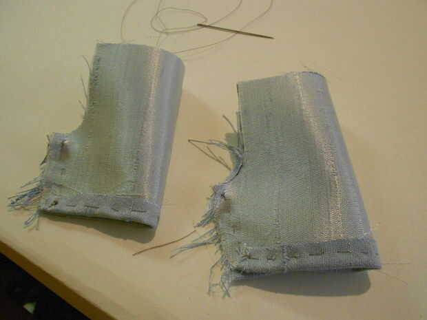 1. coser la parte inferior de cada par con una puntada de funcionamiento básica a dobladillarlos. Aquí está un breve vídeo sobre una puntada corriente que me gusta Si nunca lo has hecho antes. Esta es la más básica de principiante puntos.