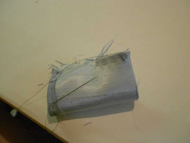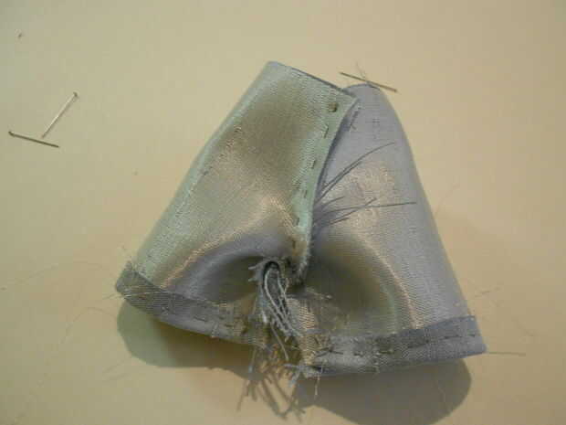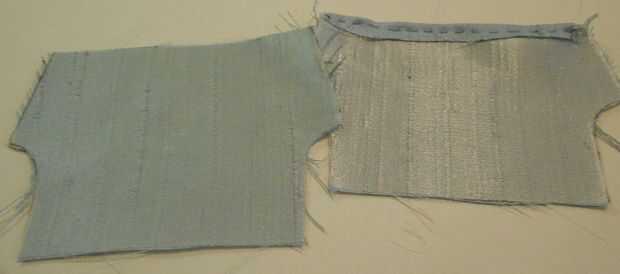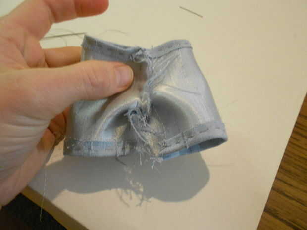 2. luego doblar cada pierna en la mitad lado incorrecto hacia fuera y coserlas juntas por lo que tiene dos pantalones.