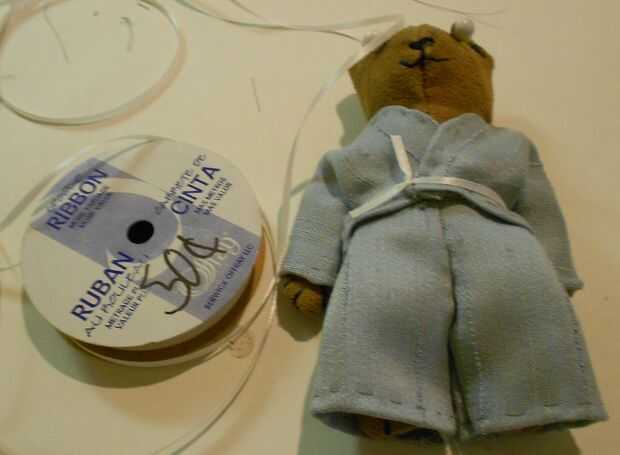 Corte de una cinta pequeña (6-8 pulgadas) y atarla alrededor de la cintura para terminar el atuendo de su oso.