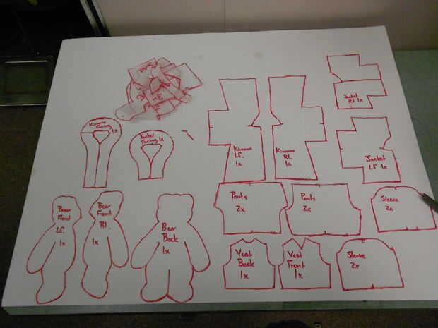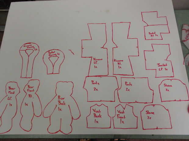 Me encanta Deviant Art., Soporte de costura, Todos los arteso su tienda local de costura o tela. Este es un clásico patrón de oso de peluche de los años 1950 que adapté para la ropa de estilo asiático. Ya que yo estaba haciendo esto para una fiesta, he copiado todas las piezas del patrón sobre el duro papel de manila a pie a más abuso/mayor precisión. También, si su patrón tiene notas para "sobre el pliegue" rehacer su patrón acostado para prevenir la distorsión. No es bueno usar en el doblez en el patrón pequeños ya que esto puede ser hasta 1/4-1/2" variaciones que matarán el factor de ternura en los animales de peluche pequeño para llevarles algo lindo a algo de la película de Tim Burton.