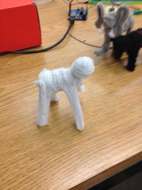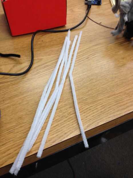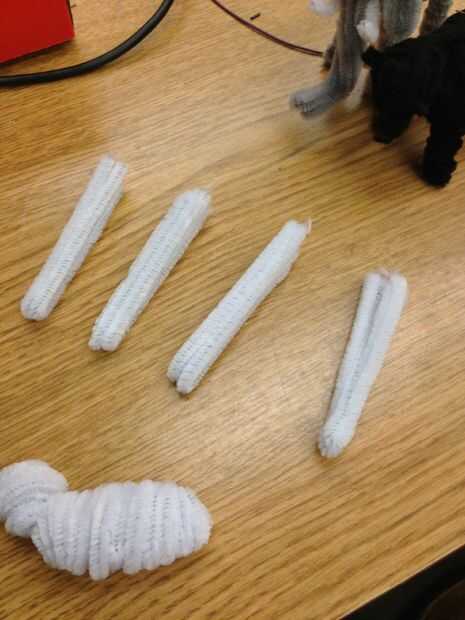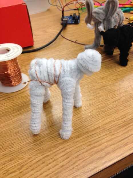 En primer lugar, elegir qué animales y cuántos le gustaría utilizar. Para simplificar, hemos decidido hacer cuatro animales simples. Un elefante, un oso, un tigre y un cerdo. Estos animales no tiene que ser hecho de limpiapipas, pero funciona bien con el alambre de cobre. Si quieres puedes hacer más de cuatro animales, pero esto requiere un poco más trabajo en el codificación final, así como el física final. Envuelva un trozo de alambre de cobre alrededor de cada animal, dejando un pequeño extremo de una pinza.