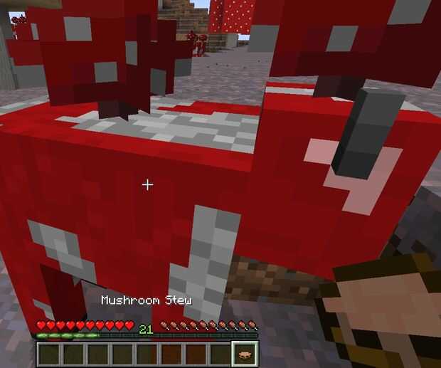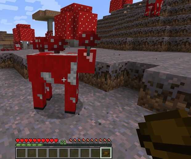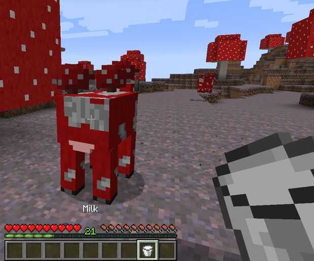 • Esquileo Mooshroom con tijeras para conseguir Setas rojo (una vez esquilado se convertirá en una vaca normal y no puede cambiar detrás)