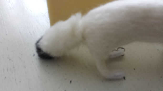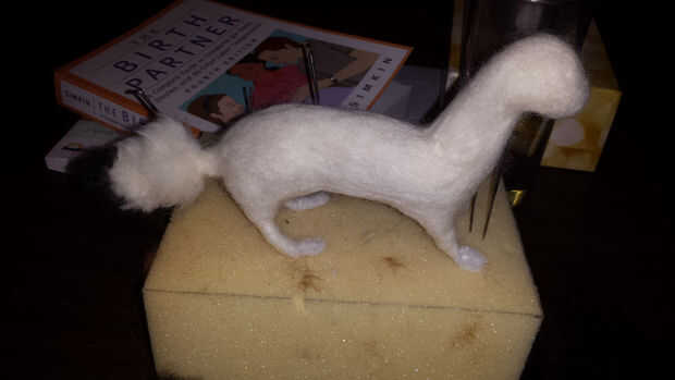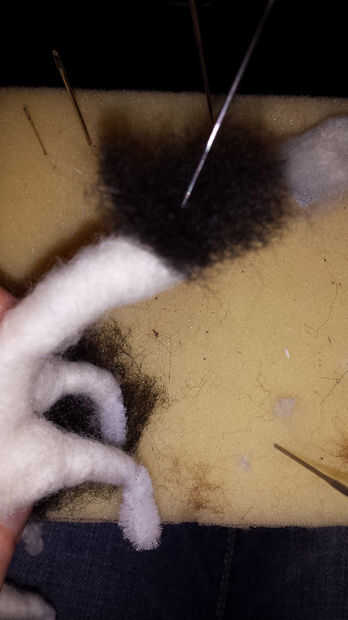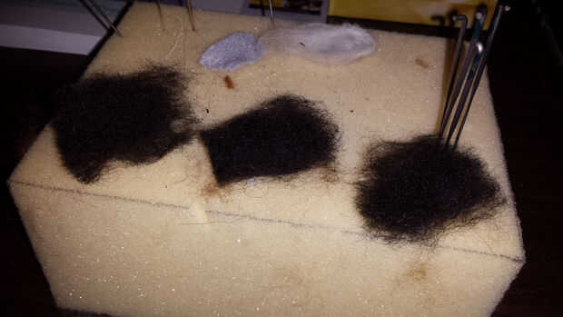 Comienza haciendo tiras de lana de merino y cortar secciones. Doblar las secciones por la mitad y sentir sobre el grueso de mecha en el centro con una aguja 42. Sentía a los lados en múltiples direcciones hasta que la piel puede soportar un leve tirón.