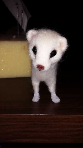 Más o menos forma de la cabeza y el hocico por zonas más densas de fieltrar, añadiendo y restando la lana merino. Asegúrese de que el área alrededor de los ojos no es demasiado denso, ya que tiene que ser capaz de encajar bien los ojos.