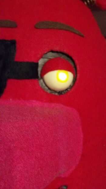 Para hacer los ojos simplemente cortar una pelota de ping-pong por la mitad y pegar una vela LED parpadeante dentro, luego pegue el ojo a un pedazo de tablero de la espuma. y cortar un agujero para alcanzar el compartimento de la batería. Mina eran originalmente extraíble con velcro pero después de ha estafado solo utiliza cinta para sostenerlas en lugar.
