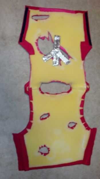 Una vez más, seguir el proceso general. Los pedazos del hombro se hicieron lo mismo que el resto pero tiene velcro en la parte inferior conexión sobre los hombros de cosido de la parte delantera y trasera de la pechera. Los lados son conectados por las correas de velcro nuevamente pero podrias sustituir el velcro para pegamento caliente o coser para un enlace permanente. Las piezas de plata dentro de la pieza del pecho son sólo tablero de la espuma con la tela brillante caliente pegado. No se olvide de obtener bajo la ropa para evitar que el lado descubierto de la espuma que muestra.