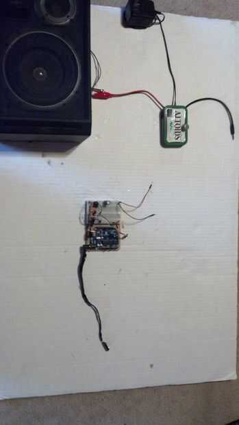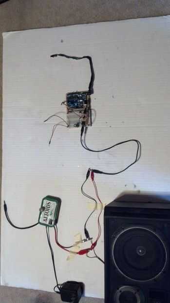 Las imágenes muestran paso a paso cómo armar las secciones de la electrónica de los diagramas en el paso anterior. La lata Altoids es mi amplificador de Audio LM386 pero fácilmente podría comprar uno con altavoces. Sugiero un amplificador de salida de dos canales, uno para la entrada de Arduino y otro para los altavoces reales. Solo usé mi amp con una caja de subwoofer y altavoz de agudos. Asegúrese de que tiene un inversor con suficiente amperaje (medida alrededor de 1600 mA en la mía) a suministrar los servos. Si intenta usar el Arduino no tienen lo suficiente para poder tanto de los servos adecuadamente. Una vez construido, colocar la electrónica en algún lugar dentro de la base o parte del animatronic.