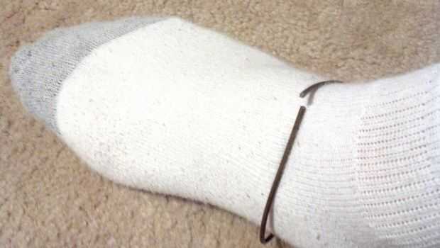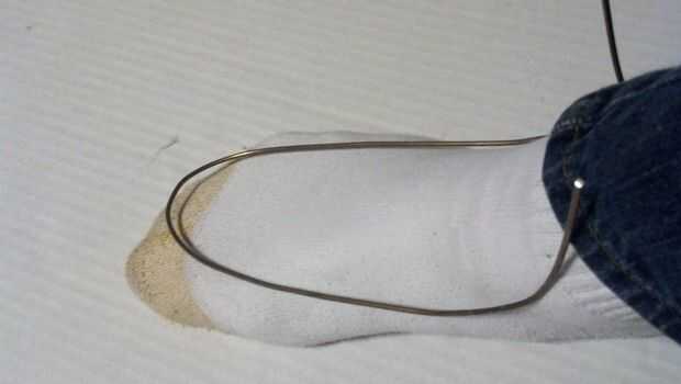 2. Doble una percha vertical hacia arriba un poco más allá de su ángulo. Licencia adicional cuando se recorta en caso necesario ajustar el ángulo del tobillo.