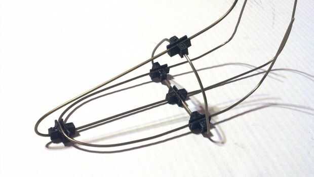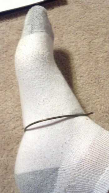 3. Anillos para sujetar los dos colgantes anteriores en lugar de la curva. Mina había doblado alrededor del punto a la mitad de mi pie, pero dependiendo de la forma de su pie podría cambiar. No pones uno en el talón alrededor de la curva de la parte posterior del pie, la tubería se ejecutará entre él más adelante.