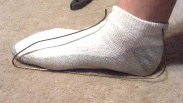 1. Doblar una forma ya sea para caber dentro de tu zapato o a la base del pie. Para mi maniquí no importa el tamaño del pie por lo que sólo un poco más grande que mi pie real lo había doblado. Era difícil caber en mis zapatos pero no importaba debido a pies de mi animatronic ser cajas grandes.