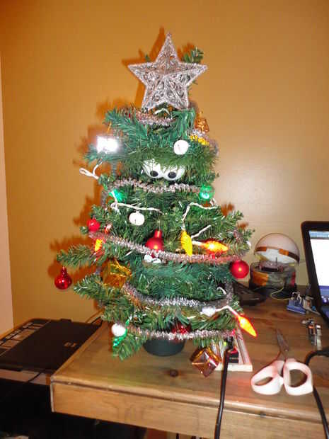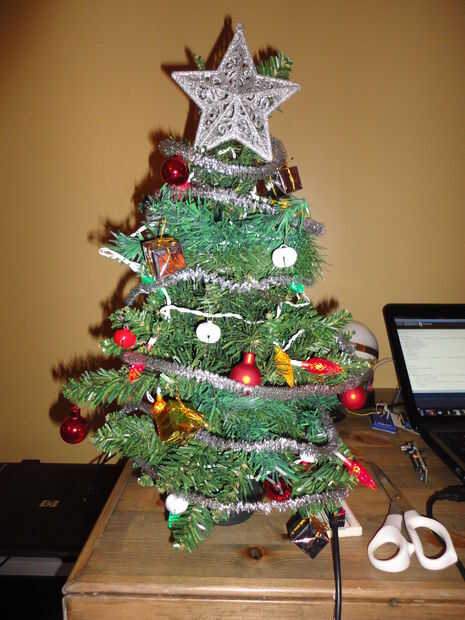 Colgué las decoraciones de la manera tradicional, tal como tendría en cualquier árbol de Navidad. Caliente pegué la estrella en la parte superior.