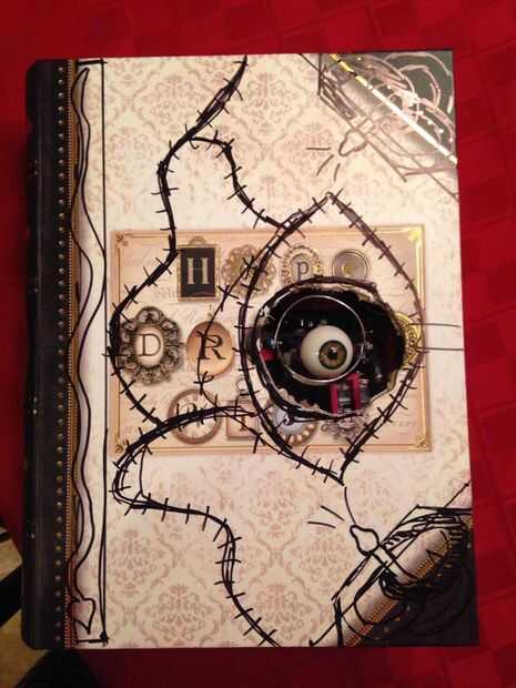 Uso modge podge pegar las piezas del libro, pero deja los bordes sin pegar. Después de que las piezas hayan secado, doblar los bordes para formar una cresta. Añadir una capa de modge podge encima de todas las piezas.