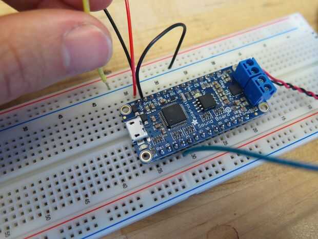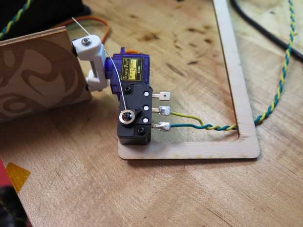 La Junta de FX funciona tirando de la clavija del número de archivo de audio correspondiente a tierra. Esto significa que cuando se activa el protector de Tiki el voltaje va a tierra. Observe los cables verde y amarillo que fueron soldados en el interruptor se conectan en el Pin 2 y tierra respectivamente. En este caso accionar el conmutador activa muestra T02 en el tablero de FX, bueno bien nombramos nuestra pista de risa increíblemente aterrador.