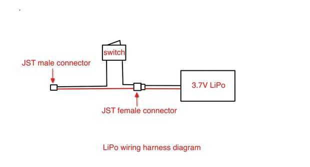 Utilicé un conector JST hembra pequeño para la celda de LiPo y luego por cable un interruptor con un JST extensión cable-este cableado se conecta directamente a la tarjeta controladora y facilita girar el regulador de encendido y apagado sin tener que desconectar constantemente la célula LiPo ya que los conectores JST LiPo pueden ser algo frágiles. Si está utilizando un Arduino estándar (Uno, Deumilanove, etc.) no es necesario hacer este cableado arnés - sólo cable un interruptor entre un transistor de 9V y su Arduino y eres bueno para ir.