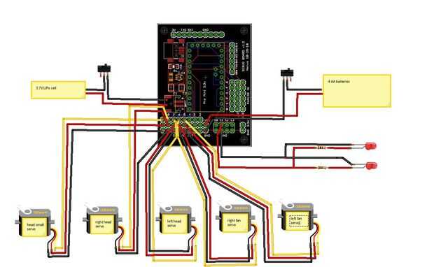 Echar un vistazo a simple super el cableado diagrama-es. Los servos se conectan como sigue: