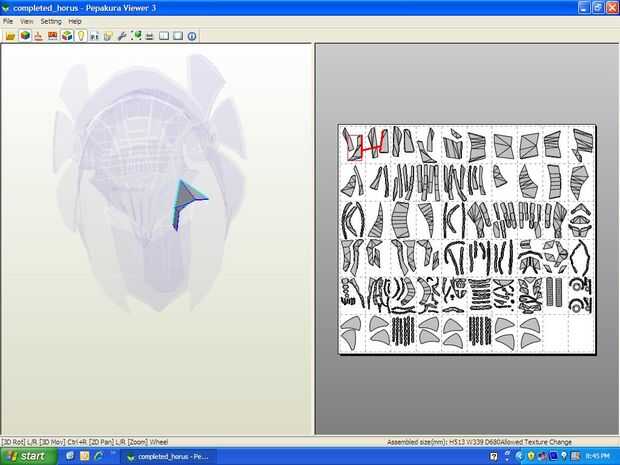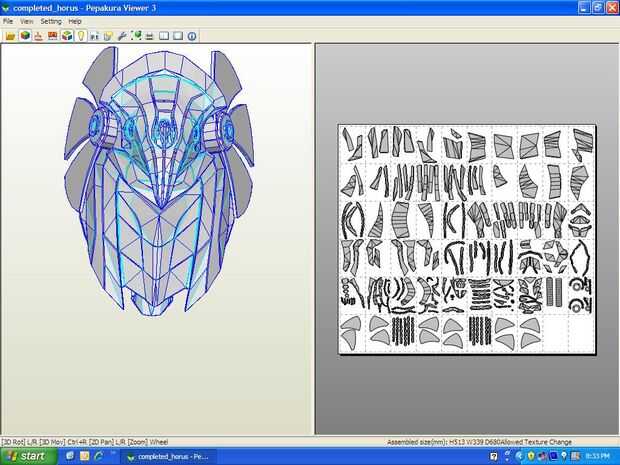 Así que lo primero que quieres hacer es descargar los patrones siempre y abra el patrón de Horus usando el Visor gratuito de Pepakura, que puede descargarse aquí (sólo en Windows lo siento)- http://www.tamasoft.co.jp/pepakura-en/