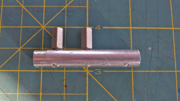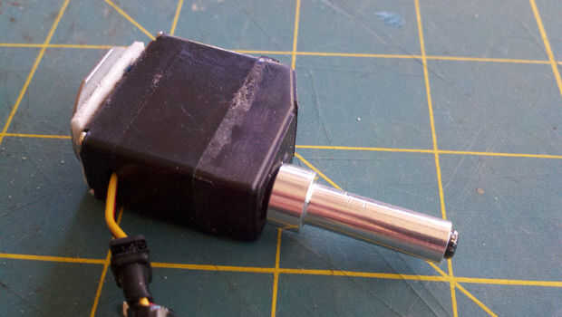 La varilla de aluminio de 3/8" entonces se asegura para el cubo de montaje de la placa base y luego en el mecanismo del ventilador...