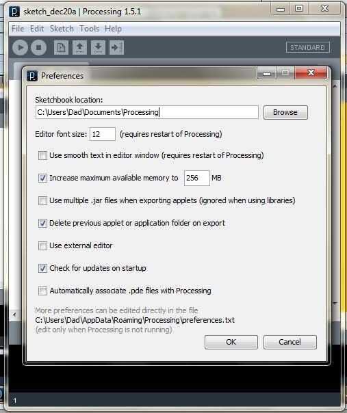 Finalmente necesitamos aumentar la memoria disponible para el procesamiento como la biblioteca de voce es exigente. Haga clic en archivo/Preferecences y aumentar la memoria disponible en 256 MB.