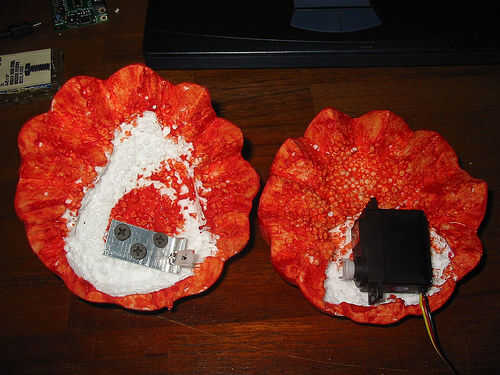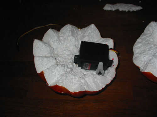 Ahueque hacia fuera el espacio para el servo y soporte.