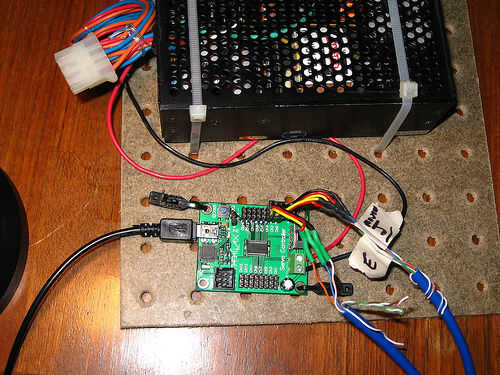 Conectar una fuente de alimentación de 5 voltios al controlador de servo. Mira aquí en Instructables para instrucciones sobre cómo convertir una fuente ATX de ordenador a una fuente de alimentación de sobremesa.