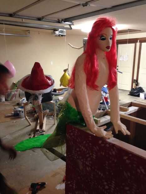 Y lo que hacer... no se olvide de Arieles peluca! En cuanto a pelo de Pinocho... compré una madeja grande de hilo negro, había atado en paquetes y caliente había pegado a su cabeza. También utilizamos el mismo paquete de hilo negro para el final de la cola de Dumbos.