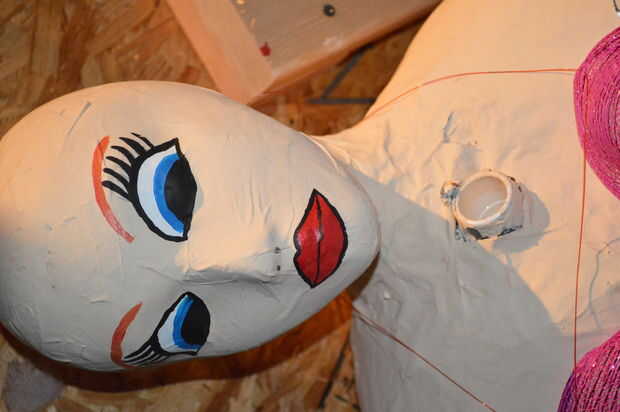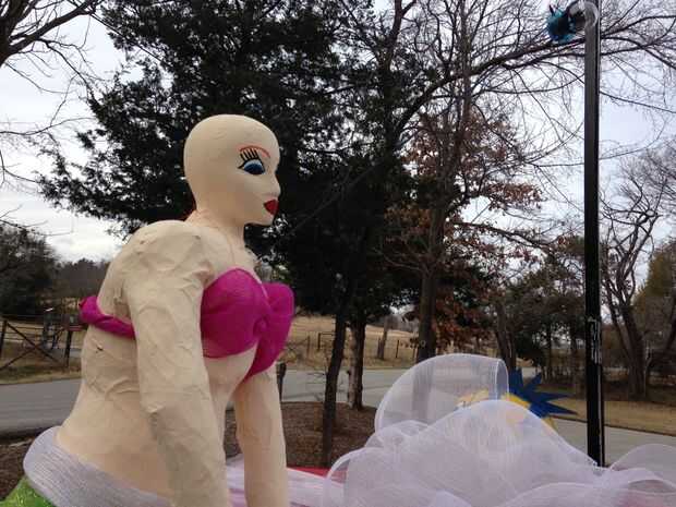 Ahora de nuevo a Ariel. Hicimos un cuadro de 2 x 4 (4'x 4'x 3' alto) y le dio a él con el 2 x 2. Luego le cubrió con papel maché, Kilz y había pintado le. La cola había hecha de cartón y cubre la cola con alguna cinta fantasia... hizo mucho easer y veía muy bien.