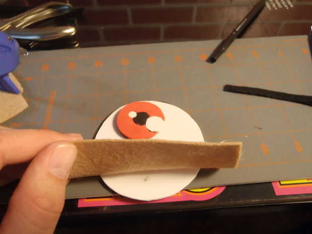 Nota extra: antes de pegamento el iris, moverlos un poco, así que usted puede agregar algunos fieltro para un párpado inferior.