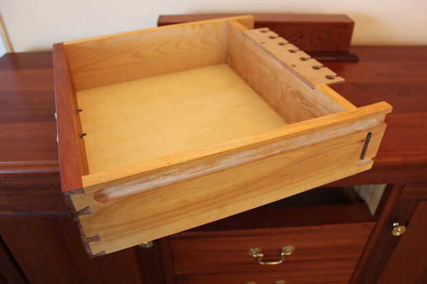 Mortaja y espiga empalmes, los agujeros de bolsada y colas de Milano son los métodos de carpintería primario utilizados en la construcción de los cajones y gabinete. Pero puede utilizarse cualquier tipo de carpintería para hacer un cajón de armario para los fines de incluir una cerradura de combinación como el descrito en este instructivo.