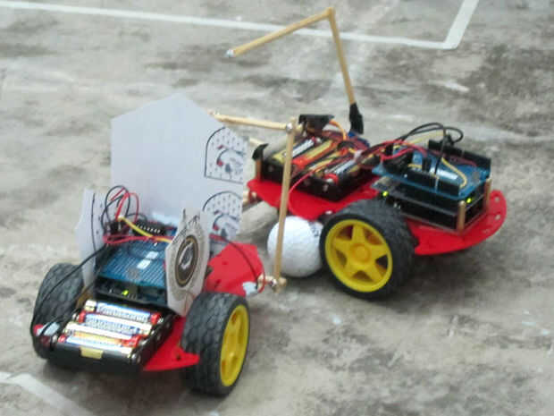 Tuvieron que aprender Arduino de nuestra biblioteca Annikken Andee. Usando las lecciones en nuestra página web son capaces de crear interfaces funcionales para tomar el control de sus robots de fútbol. Con lecciones sobre cómo crear personalizar slider y botones, todo lo que necesitan, fue una idea de como agarrar el balón y driblar hacia la meta.