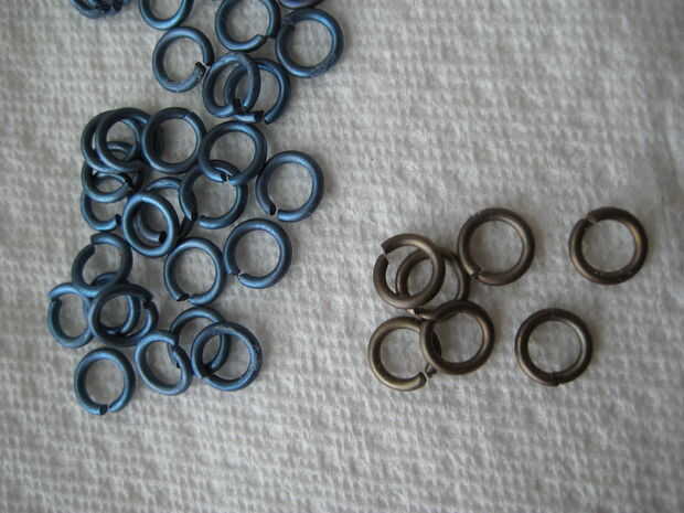 Me parece que utilizar electrolitos diferentes resultados en diferentes colores. Con vinagre blanco, 3 baterías de vuelta los anillos de color bronce oscuro. Usando bicarbonato de sodio, el mismo 3 pilas hacen un buen denim azul.