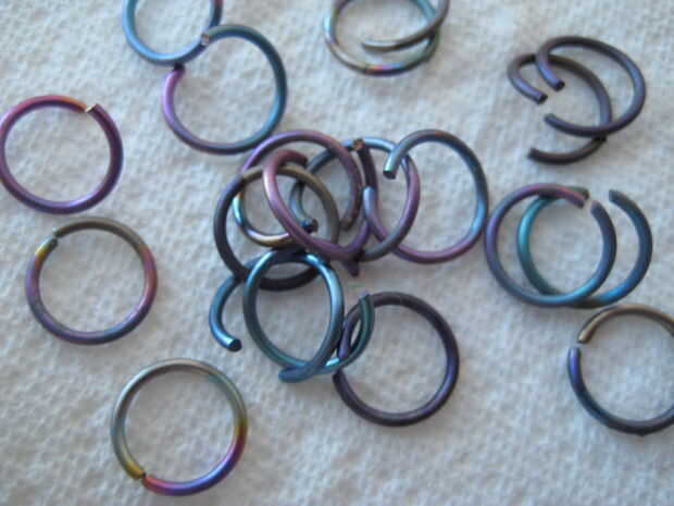 Uso de nueve pilas, el anodizado parece producir naturalmente rosa. Me algunos ligeros azules y turquesas dejando los anillos en ya, pero el cambio de color de rosa a color turquesa era muy lento y requiere paciencia. Como hay unas burbujas en los anillos de titanio, hay alguna posibilidad de que avance al siguiente color. Sin embargo, no hay ninguna garantía y usted debe esperar a la ruina unos anillos.