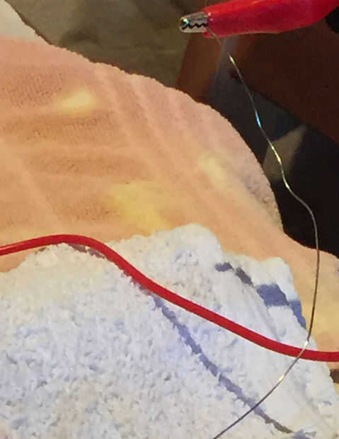 Conecte el cable restante a la pinza conectada a la salida positiva de la fuente de alimentación