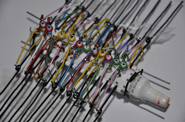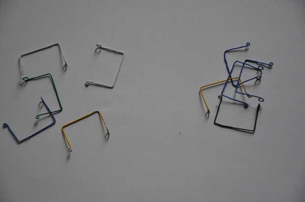 Seis de las personas con la horizontal hacer gancho doblada de una manera y otros seis con el lazo doblaron al revés. Otra vez porque se agregarán seis en un lado y seis al otro lado del marcador.