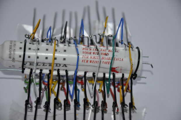Pero ten cuidado no para soldar la conexión entre los dos! La bola de la soldadura (o lo que se utiliza) sólo debe prevenir la barra de deslizamiento.