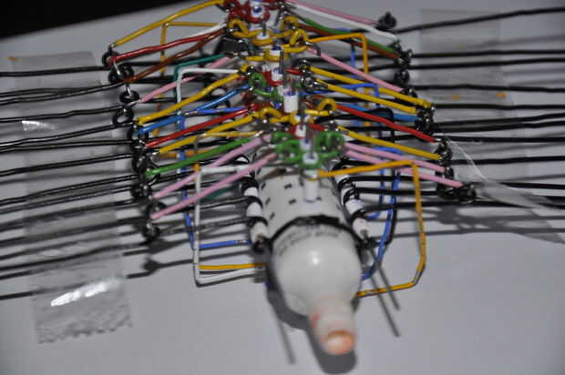 Hacer el lazo horizontal doblando el alambre alrededor de un pedazo de tubo para que se ajuste precisamente alrededor de él.