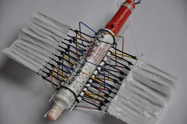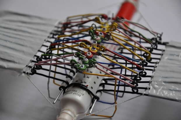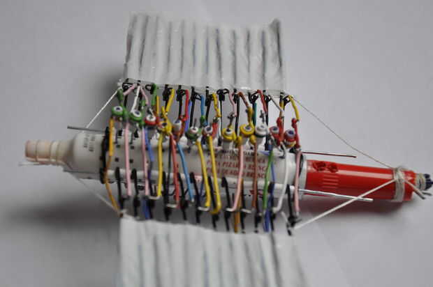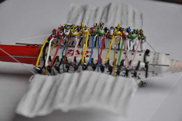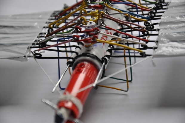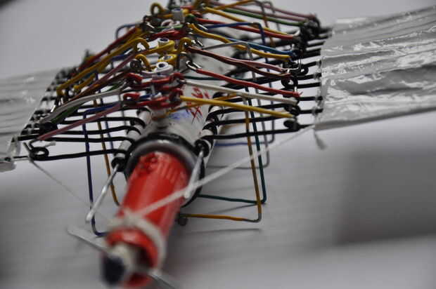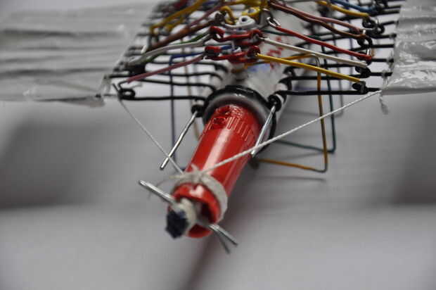 En segundo lugar, sólo girando el motor a los vientos la goma hasta el par se vuelve más grande que la fricción estática, luego se desenrolla la goma. Por lo que el movimiento sólo es posible en pequeños pasos, no se ve bien en cámara tampoco.