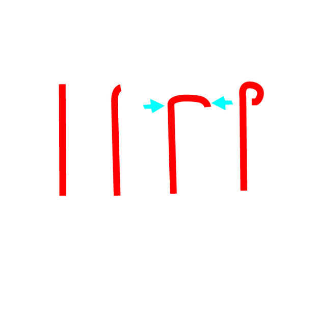 En la segunda foto se muestra esquemáticamente cómo un gancho puede ser formado de manera más pequeño que sus pinzas.